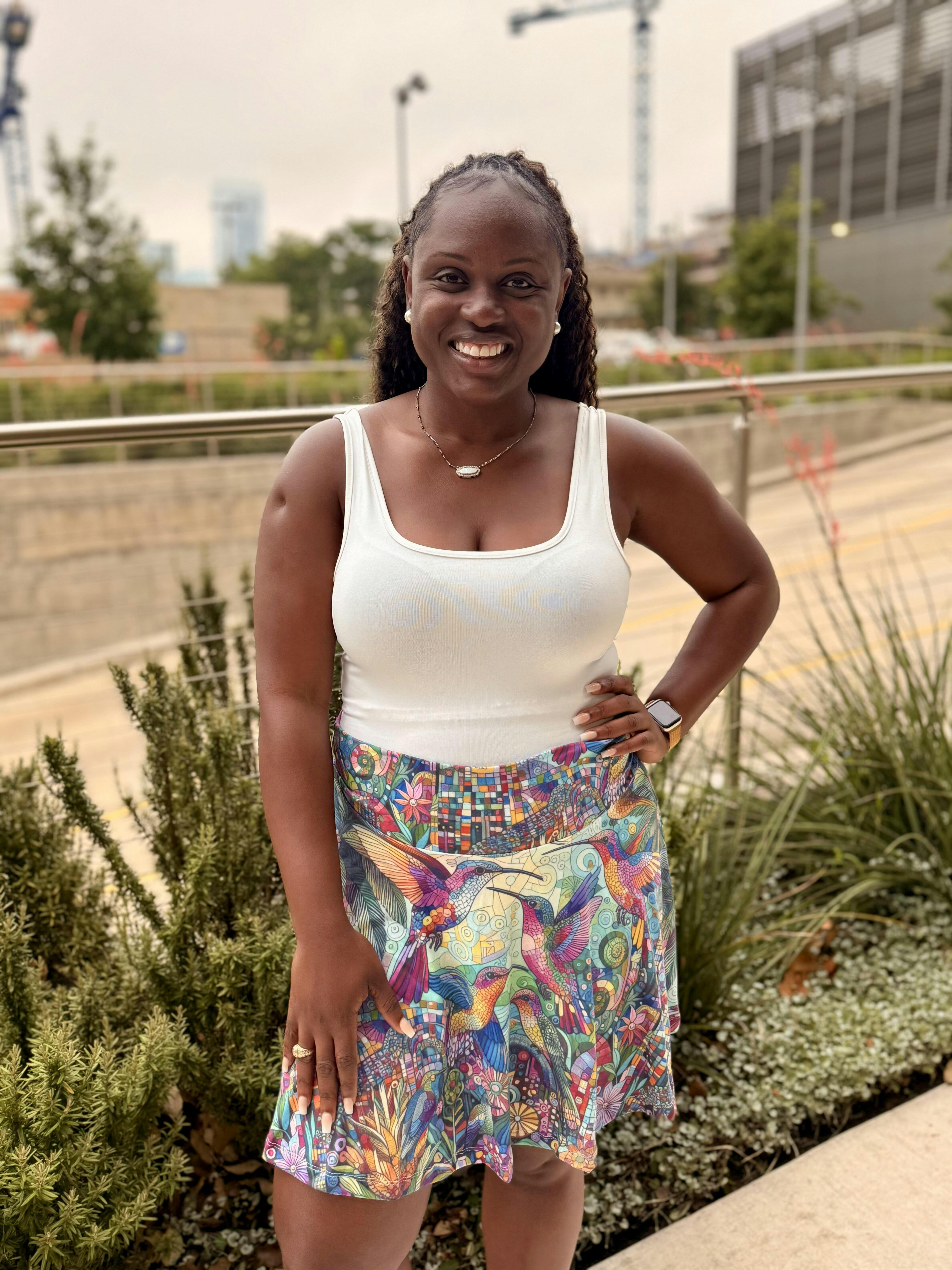 Introducing a beautiful Skater Skirt that combines comfort and style. This skirt features an eye-catching print of hummingbirds and vibrant flora, perfect for adding a splash of nature to your wardrobe. Ideal for sunny days out or casual gatherings, it exudes a playful, carefree vibe. The high-rise elastic waistband and stretchy fabric ensure a snug yet comfortable fit. This skirt is perfect for people who love vibrant patterns and seek versatility in their attire. It makes a great gift for birthdays, holidays, or just as a treat for yourself! Wear it to picnics, beach outings, or casual brunches, and let your style shine.